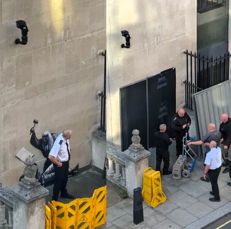 - O mural de Banksy em Londres (2025), pintado nos muros do Royal Courts of Justice, retratava um juiz a agredir um manifestante. Foi removido em 48 horas, oficialmente por motivos patrimoniais, mas amplamente interpretado como censura preventiva7 8. Ricoeur falaria aqui de uma “política do esquecimento”³. Não é o primeiro caso, o que indica que os seus trabalhos são considerados arte ou vandalismo, dependendo do alvo da sua crítica.